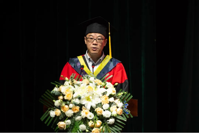 “每一段值得铭记的青春,始终是与祖国同向而行的青春,是挥洒汗水铸就的青春,是依靠学习走向未来的青春,是在平凡中孕育伟大的青春。”校长潘良明说。希望同学们以奋发之姿勇挑国家民族重任,与伟大的祖国一起奋斗、一起成长,为实现中华民族伟大复兴中国梦而不懈奋斗。希望同学们将“知行至善、厚积薄发”的校训精神内化于心、外化于行,坚守“追求卓越”的进取之心,将所学应用于实践,以“人一之、我十之,人十之、我百之”的奋斗姿态,在攀峰登高中奋勇前行,在攻坚克难中锤炼意志,在奋楫争先中成就自我。希望同学们在新的人生阶段,时刻增强知识更新的紧迫感,始终把学习作为立身做人的永恒主题,向他人学习、向世界学习,养成学贯中西的学识、胸怀天下的气魄、求真求善的质朴、善作善成的担当。希望同学们从“平凡”处起笔,投身社会的巨浪和时代的洪流中去,以平凡之心诠释坚守之志,在历史中留下“不平凡”的痕迹。