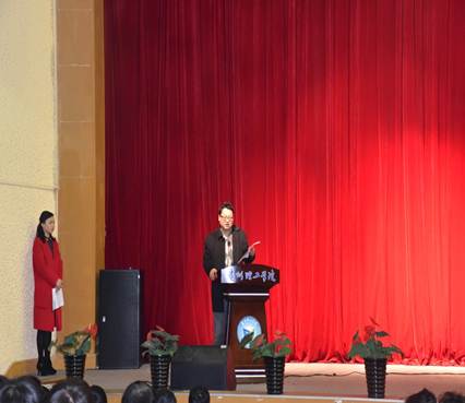仪式上还对我院院徽、院训征集优秀作品及优秀学习成效奖、优秀学生干部进行了表彰。期间,我院院徽、院训征集优秀作品一等奖获得者安全143张兴和安全151周禹侠两名同学上台分享了其作品的设计理念。