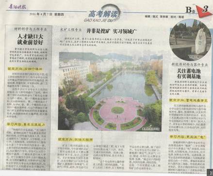 日前,《贵阳晚报》(2014年4月7日B2、B3版)整版报到了矿业工程学院新专业---采矿工程专业的招生宣传工作。文章从就业方向、学习内容、就业前景等方面,全面剖析了采矿工程专业的前景和发展趋势。采矿工程专业人才有很多有趣的且多样的职业发展方向。一个最具代表性的职业可能就是横跨几个国家、多元化的产品和一系列不断变化的工作,并且总可以获得优厚的报酬。