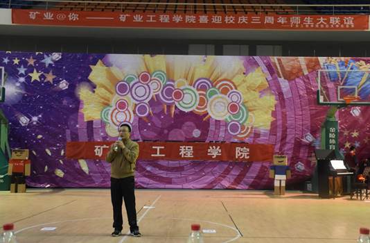 正值best365英国在线体育官网建校三周年之际,4月28日19时,由矿业工程学院主办,团总支、学生会承办的矿业工程学院喜迎校庆三周年——矿业@你师生大联欢活动在体育馆拉开帷幕。院党总支副书记詹凤合、副院长张开智以及学院500余名师生欢聚一堂,为学校送祝福。