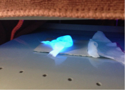 在紫外灯下的面膜发出荧光