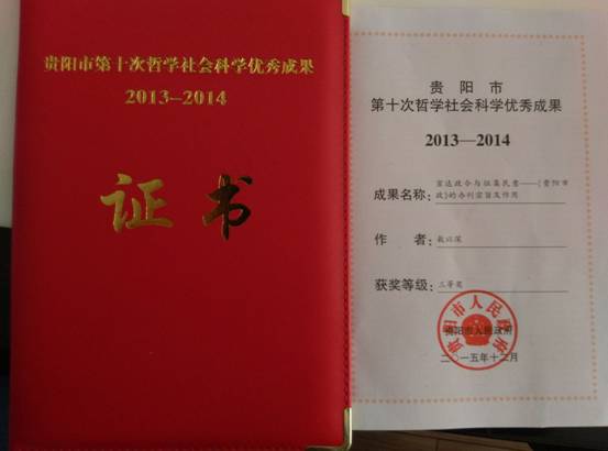 (本网讯 蓝文思供稿)根据贵阳市第十次哲学社会科学优秀成果评奖结果,马列部主任敖以深教授荣获此项殊荣。贵阳市哲学社会科学奖是贵阳市哲学社会科学领域唯一的一项政府权威奖项,坚持公平、公正、公开的原则,突出精品意识,努力推出一批具有较高理论水平和实用价值的优秀成果,以激励广大哲学社会科学工作者创造出更多的优秀成果,进一步繁荣发展贵阳市哲学社会科学事业,为贵阳市经济社会发展和生态文明城市建设提供思想保证、精神动力和智力支持。此前,按照贵阳市第十次哲学社会科学优秀成果奖评选申报的办法规定和程序,敖以深教授积极参与申报。经过评审、审核和公示等环节,敖以深教授申报的《宣达政令与征集民意——<贵阳市政>的办刊宗旨及作用》荣获论文类三等奖。