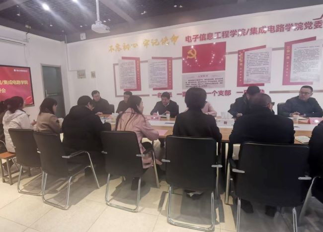 2月28日,校党委常委、副校长崔新明到电子信息工程学院/集成电路学院调研指导工作,人事处处长张莉、计划财务处处长潘庆阳、发展规划处处长王博、信息化建设与管理处处长石坚、后勤管理服务中心主任谭建华参加调研。学院党政班子成员、系主任及三级机构负责人、教师代表等参会,会议由学院党委书记、常务副院长杨燕主持。