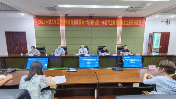 7月21日,由工程技术实训中心主办,机械工程学院联合承办的“2025年湖北省职业院校教师素质提高计划项目——机电一体化专业课程实施能力提升培训班”在永利官网顺利开班。学校党委常委、副校长潘旭海,机械工程学院及工程技术实训中心相关领导出席开班仪式。本次开班仪式由工程技术实训中心主任李甲林主持。