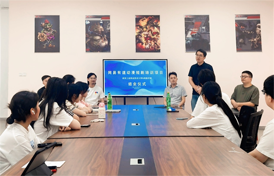 7 月 31 日,艺术设计学院与网易有道联合举办的 “大宋映画” 网络动画短剧第一期培训项目结业仪式在天堂校区数智创意产业学院举行。该合作项目是双方依托产业学院,深化产教融合、推动数字艺术人才培养与行业需求精准对接的重要实践。网易有道产教融合总监李飞、网易“大宋映画”项目部经理萧醒、艺术设计学院副院长任小飞、数媒系副主任夏广宁和跟班教师参加活动。结业仪式由夏广宁主持。