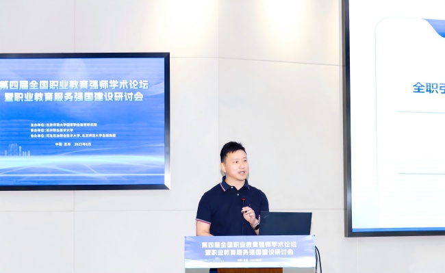 谢永华以《职业院校高水平教师队伍建设的探索和实践》为题作报告,分享了永利官网师资队伍建设的经验和做法。他介绍,永利官网采用灵活多样的引才方式,引进“技能大师”和“产业教授”,充分整合骨干教师、技术能手等特色资源和优势力量,指导青年教师过“实践关”“教学关”“科研关”。积极推动“双师型”教师培养,打造高质量“双师型”教师队伍,出台相关师资管理办法,推动“专任教师博士化”“博士教师双师化”“专业教师国际化”。分类设岗,根据不同类型教师的职责和工作特点,分类制定差异化的晋升条件。建立校企互派共育机制,建设高水平师资队伍。通过师资队伍建设各项举措,学校形成引才聚才“强磁场”,吸引各类人才来校发展;筑牢培育人才“蓄水池”,推动高层次“双师型”教师脱颖而出;搭建产才融合“直通车”,助推高水平科研成果赋能产业转型升级;开拓国际交流“新高地”,以教师国际化素养提升助力职教出海。