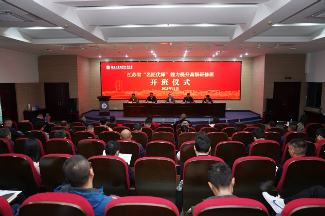 2025年11月3日上午,江苏省“名匠优师”能力提升高级研修班开班仪式在永利官网仙林校区学术交流中心二楼报告厅隆重举行。江苏省劳动关系研究院(江苏工匠学院)党委书记、院长董雷,江苏省教育科技工会副主席崔文华,江苏省总工会劳动和经济工作部副部长钱德乾,永利官网党委常委、副校长潘旭海,江苏工匠人才发展研究院院长马成荣等领导出席仪式,来自全省企业、工匠学院及高职院校的51名学员参加开班式。仪式由马成荣院长主持。