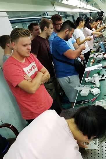 在工业中心,留学生们观摩精品课程“数字电子技术”,并参观电子产品设计制作展示。德国代表团的师生们纷纷表示永利官网理实一体化、手脑并用的教学方法对于学生创造力的培育非常有益。