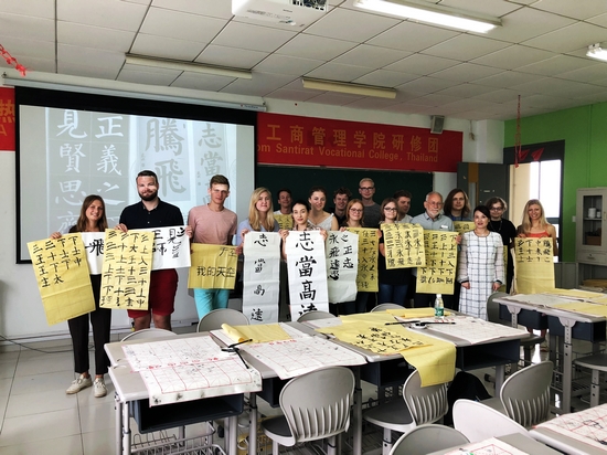 中国书法课上,留学生们兴致盎然,认真听讲,大胆实践,快速掌握了毛笔使用的基本技巧,并完成了各自的书法作品。中华美食与汉语课上,老师通过各种生活细节,讲解中国传统文化,使留学生们对我国的礼仪和饮食等有了深入了解。参加太极拳课程时,指导老师通过动作拆解、纠正和重复练习,使留学生同学们初步掌握了太极拳的基本动作,课程结束时同学们仍意犹未尽。