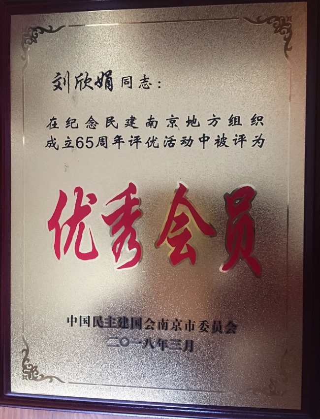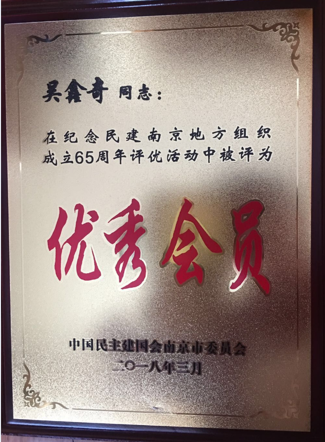 永利官网民建南工院支部荣获“先进支部”称号,支部会员刘欣娟、吴鑫奇作为优秀会员获得表彰。