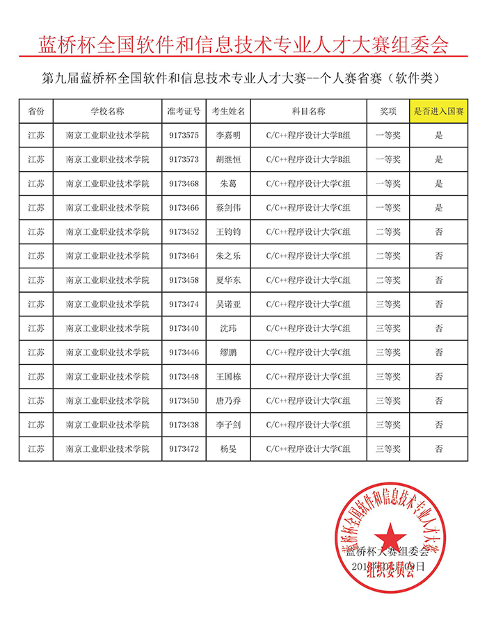 第九届蓝桥杯全国软件和信息技术专业人才大赛个人赛省赛于4月1日举行,大赛由工业和信息化部人才交流中心主办,来自全国1200多所高校5万余名选手同台竞技,永利官网选手再次获得好成绩。