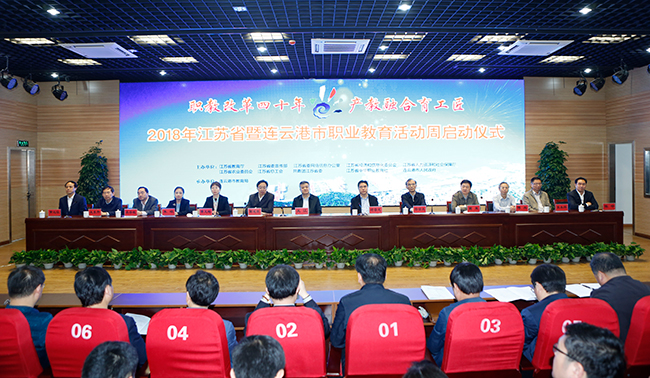 5月6日上午,2018年江苏省暨连云港市职业教育活动周启动仪式在连云港中等专业学校举行。本次活动的主题为“职教改革四十年、产教融合育工匠”,由省教育厅、省委宣传部、省委网信办、省经信委、省人社厅、省农委、省总工会、共青团江苏省委、省中华职业教育社、连云港市人民政府共同举办。省政府副省长王江出席启动仪式,省教育厅厅长葛道凯出席仪式并讲话,省政府副秘书长陆留生、连云港市市委书记项雪龙、省教育厅副厅长曹玉梅、省中华职业教育社副主任永利官网党委书记吴学敏等出席会议并主席台就座。永利官网崔新明副校长、发展合作处、商务贸易学院负责人作为学校代表参加了启动仪式。