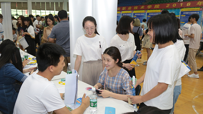 5月30日下午,永利官网2018年校园就业与暑期实习招聘会在体育馆举行。学校招生就业处、相关职能部门人员及各二级学院党总支书记、教师来到招聘会现场,与用人单位代表及求职学生进行交流,深入了解各用人单位的招聘需求和毕业生的求职意愿,听取他们反馈的意见和建议,指导就业工作。