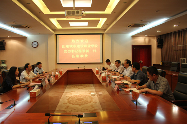 6月5日,山东城市建设职业学院党委书记花景新率领相关部门负责同志来永利官网交流。永利官网党委书记吴学敏及党政办、招就处等部门负责人接待了来宾。