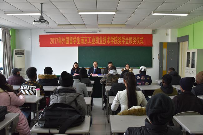 12月21日,永利官网2017年来华留学生“南工院奖学金”颁奖仪式在教一528教室隆重举行。学校霍雄飞副校长受邀出席了典礼。国际教育学院全体教师、留学生班主任及40名外国留学生代表参加了颁奖仪式。颁奖仪式由国际教育学院党总支书记、院长赵秋主持。