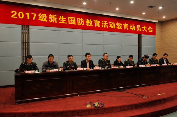 10月21日上午9时,永利官网2017级新生国防教育活动教官动员大会在学术交流中心二楼报告厅举行。解放军陆军工程大学指挥军官基础教育学院官兵、军训团相关领导、各二级学院党总支书记、大一新生辅导员及93名教官参加了动员大会。