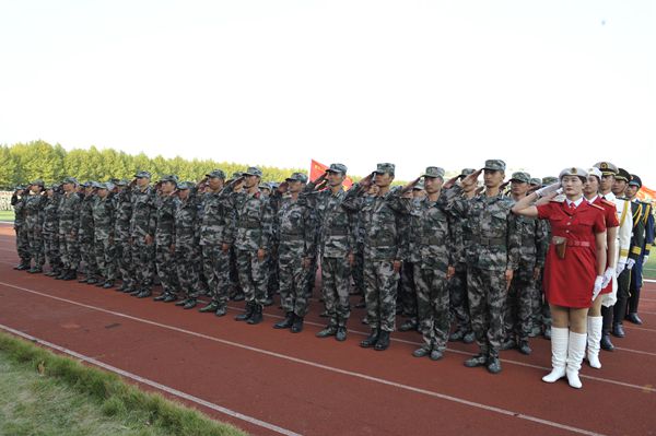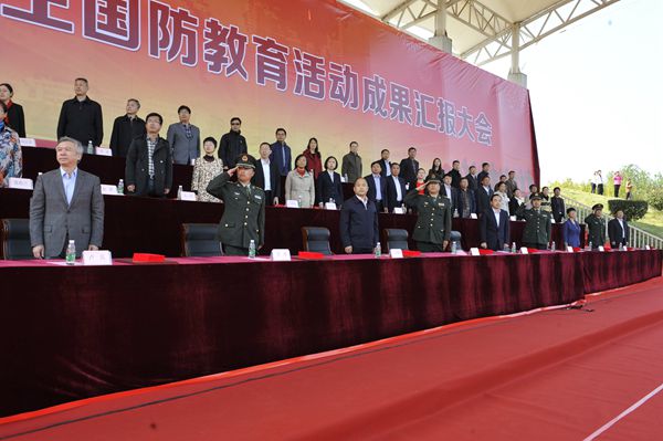 秋阳明媚,军歌嘹亮,10月29日下午,永利官网2017级新生国防教育活动成果汇报大会在西运动场隆重举行。解放军陆军工程大学指挥军官基础教育学院贾卫主任、满振刚大校、王大伟上校、王伟才中校、倪靖中校,校党委书记吴学敏,党委副书记苏小冬,党委委员、副校长朱建国,总督学卢兵及军训团成员、二级学院和相关部门的负责同志出席大会。汇报大会由学生工作部、人民武装部劳家仁部长主持。
