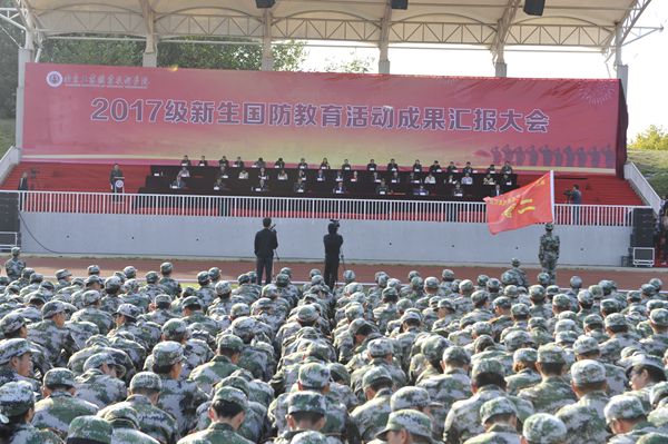 2017级新生国防教育成果汇报大会在全体师生《歌唱祖国》歌声中圆满结束,同学们将秉承“敬业乐群”的校训,不忘初心、继续前进,以当代大学生积极向上的精神风貌,完成大学学业!