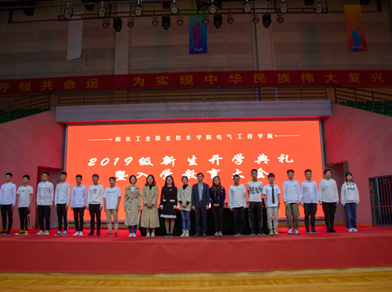 国歌声中,教育大会拉开帷幕,杨战民院长代表学院全体师生对新同学表示热烈欢迎,并介绍了学院的办学历史、专业特色和发展方向,要求同学们继承永利官网“手脑并用,双手万能”的职教精神,提升实践能力和专业素养,确立专业追求,树立人生理想。马多勇书记为大家讲解了学院现有的师资团队和公寓“6S管理”的内涵,展示了近年来学院在各种大赛中取得的成绩,呼吁同学们加入到创新创业的队伍中来,并对新生提出三点要求:与人和睦、学好专业和培养批判性思维。新生代表也阐述了自己对大学生活的展望,展示了全体新生严守校规校纪,做好本职工作,团结友爱,互帮互助,砥砺前行信心和决心。随后,党总支副书记王静和全体辅导员为各班新生代表佩戴了校徽,代表着从此每位学生把学校放在心上,正式成为南工院电气工程学院大家庭的一员。