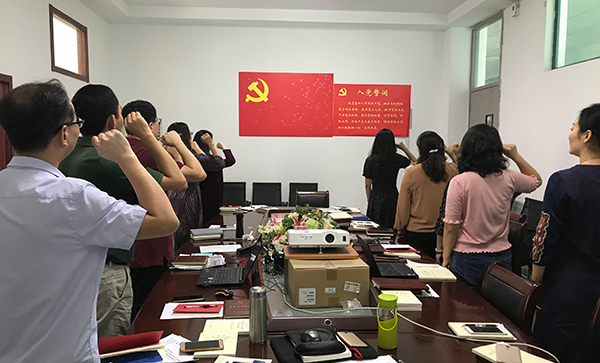 (四)立足岗位、思政教师使命与担当。“三会一课”是马克思主义学院直属党支部推进主题教育的重要载体。通过开展“四重四亮”主题党日活动,全体党员重温了入党誓词、重读入党志愿书,追问入党初心,讲述入党故事,分享成长历程。使全体党员的思想政治受到洗礼,树立起“亮身份、亮承诺、亮标准、亮作为”的奋发精神。通过开展“初心是什么、使命干什么、奋斗比什么”专题讨论会,每位党员立足岗位职责,结合自身工作实际,围绕“寻找我的初心和使命”,分享了自己对初心、使命、奋斗的理解,进而引发思政课建设的“三问”大讨论,即“思政课建设的初心是什么?思政课的供给精准度如何?思政课的改革路在何方?”党员们畅所欲言,激发了干事创业的担当。