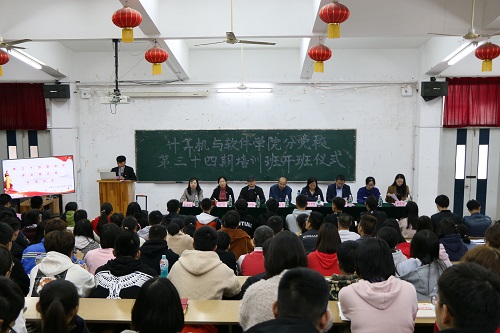 11月20日中午,中共南工院党校计算机与软件学院分校第三十四期培训班开班仪式在敬业楼阶梯教室举行,学院党总支书记刘英慧、党总支副书记邹烈刚、兼职组织员张国泰、以及学院党支部书记、党建组织员、学院150余名入党积极分子参加。此次会议由学院团总支副书记张齐兴同学主持。