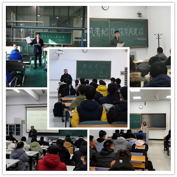 机械工程学院召开班主任会议,详细布置了关于严肃考风考纪的相关工作,要求所有班级以“严肃考风考纪,加强学风建设”为主题召开专门的主题班会。机械工程学院所有班级均按照会议要求,在规定时间召开了班会,会上班主任向学生宣读了《一封信》的内容,对学生再次进行诚信教育,并通过之前处分的部分案例,教育学生认识到违反考试纪律应承担的责任和严重后果,引以为戒,提高学生遵守考试纪律的自觉性。