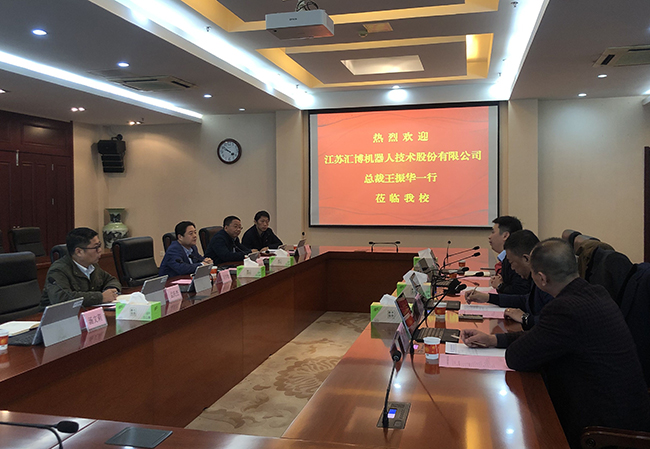 12月10日上午,江苏汇博机器人技术股份有限公司王振华总裁一行来校交流,永利官网党委委员、副校长崔新明及科技处、发展合作处、机械工程学院等相关部门负责同志接待了来宾。