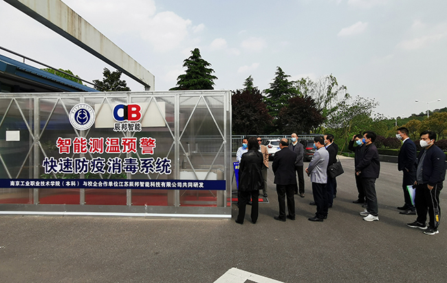 专家组首先现场观看样机演示,针对样机进行了询问,并听取了项目研发团队的研发思路、技术路线、实现方式、技术报告等汇报,并查阅了相关材料,经质询和讨论,形成鉴定意见。专家一致认为:经过试用与测试表明,该密集人群智能测温预警系统具有技术先进、稳定可靠、经济高效等优点,快速防疫消毒系统具有自动消杀功能,为疫情防控提供了新的技术路径和手段。专家建议进一步优化结构及参数,加大示范推广力度。