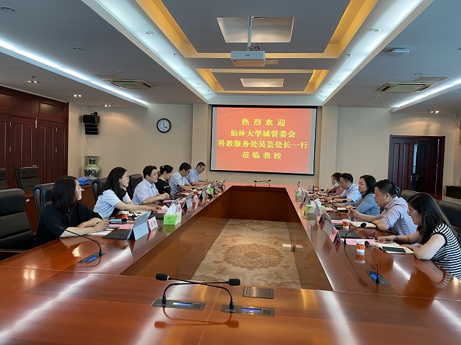 5月26日上午,仙林大学城管委会科教服务处处长吴芸、副处长洪立军一行到永利官网进行调研交流。永利官网党委委员、副校长崔新明以及党委宣传部、高等职业教育研究所、科技处、发展合作处等部门负责人接待了来宾。