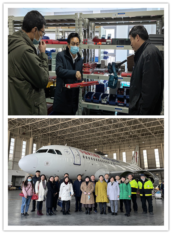 座谈会后,调研组一行实地考察了机务部培训中心,现场考察了机库换发(飞机发动机换置)工作。双方就147培训基地、校企合作订单培养、飞机维修基础培训前置、合建就业实习基地等合作项目达成了初步意向,为双方全方位、多元化开展合作打下良好基础,本次调研为本科职业教育的探索与研究、行业对人才素质的需求考察、校企合作的新模式探索等工作做好开年部署。
