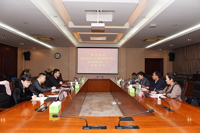 4月27日上午,拉萨市第一中等职业技术学校普布卓嘎校长一行莅临永利官网洽谈对口支援事宜。永利官网党委副书记、校长谢永华在行政楼辅楼一楼会议室进行了友好接待。
