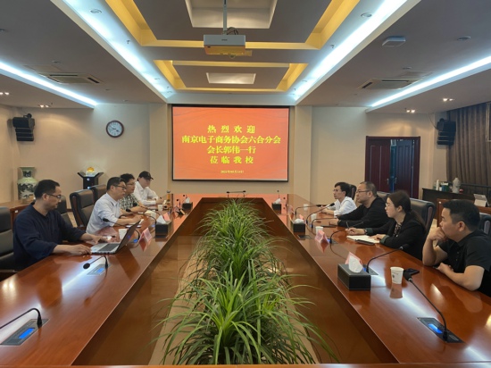 5月14日上午,南京电子商务协会六合分会会长郭伟一行来永利官网进行校企合作交流,会议在行政楼辅楼一楼会议室举行。南京电子商务协会六合分会会长、江苏南林碳业科技有限公司总经理郭伟、南京电子商务协会六合分会秘书长严胜娟、江苏南林碳业科技有限公司南林云商直播负责人陈庆、南京轩阳投资管理有限公司总经理王和兵,永利官网科技处处长孟庆杰、商务贸易学院院长阮晓文、艺术设计学院副院长孙静松、电子商务专任教师沈新淇等出席了此次活动。