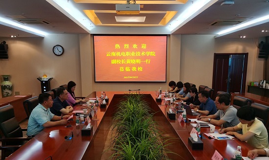 6月7日上午,云南机电职业技术学院副校长黄晓明一行来永利官网考察调研。党委常委、副校长潘旭海,以及教务处(教师发展中心)、马克思主义学院、社会科学部、机械工程学院等部门负责同志在行政楼辅楼一楼会议室接待了来宾。