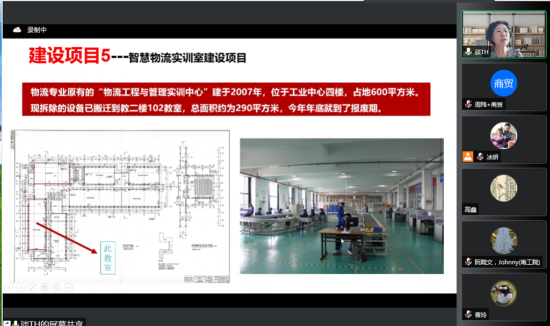 物流团队教研室主任谈慧教授首先对智慧物流实训室建设思路和方案进行了详细介绍。随后,三位校外专家依次提出论证建议。张朋经理认为,智慧物流实训室设计方案涵盖了现有物流企业实操中需解决的大部分问题,对培养学生成为复合型技能人才有较好的促进作用;姜方桃教授认为,整个设计思路和方案布局比较全面,与物流专业人才培养方案匹配度高,并建议后续完善和满足自然班学生的实训空间,增加采购强化学生研究能力培养的物流实训软件;陶经辉教授认为,该智慧物流实验室建设方案很好地对接了专业人才培养方案,建议在现有的两期建设计划上继续细化和优化建设方案,并鼓励去有相同专业背景的兄弟院校进行深入调研,借鉴成功的建设经验。三位专家论证后,物流团队全体教师也依次发表了建议和想法。