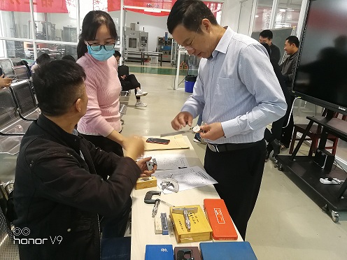 钳工班,各主讲教师分别就《中职学考方案解读》《钳工技能考试方案解读》《钳工工件检测标准解读》做了精彩的讲座,同时针对《钳工工件现场制作》《钳工工件检测》进行了现场实操培训。