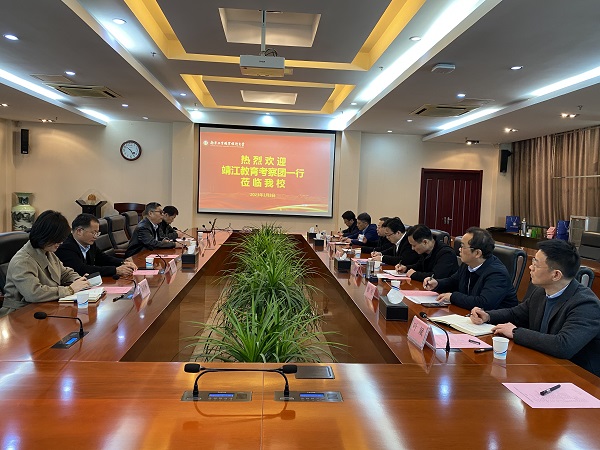 3月3日上午,江苏省靖江中等专业学校、靖江市职业技能公共实训中心党委书记、校长顾卫国、靖江市教育局副局长王振宇、靖江市经济技术开发区经济发展局副局长刘阳、靖江市人力资源和社会保障局党组副书记朱建忠、江苏省靖江中等专业学校副校长徐刚一行来永利官网考察交流。永利官网党委常委、副校长孙雁飞、科技处、发展合作处处长孟庆杰、机械工程学院、航空工程学院以及交通工程学院主要负责同志参与交流。