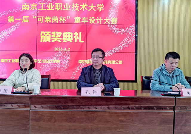 为推进产教融合,深化校企合作,yl23411永利集团官网艺术设计学院与南京建武电子科技有限公司联合举办了首届“可莱茵杯”童车产品创意设计大赛,学院将大赛融入实训项目教学,为企业开发了一批高质量的童车设计方案,受到企业的高度认可。经校企专家评审,评选出一、二、三等奖6名,优秀奖15名,优秀指导教师2名。3月2日下午,校企双方在天堂校区综合楼六楼报告厅隆重举行了大赛颁奖典礼,艺术设计学院院长孔伟、南京建武电子科技有限公司总经理朱墨以及学院师生代表参加了此次典礼。