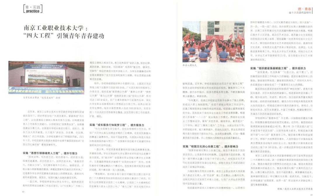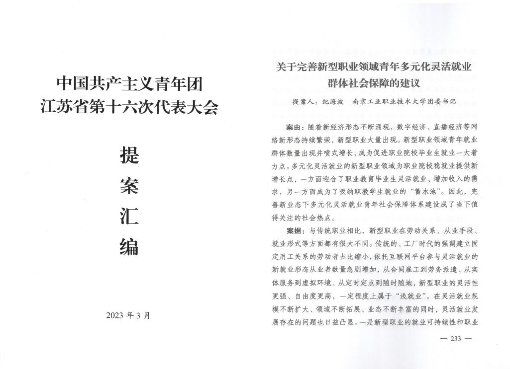 永利官网报送的《关于完善新型职业领域青年多元化灵活就业群体社会保障的建议》被纳入优秀提案汇编。《yl23411永利集团官网:“四大工程”引领青年青春建功》作为高校典型案例(全省共5所)被《风流一代》团代会特刊收录和报道。