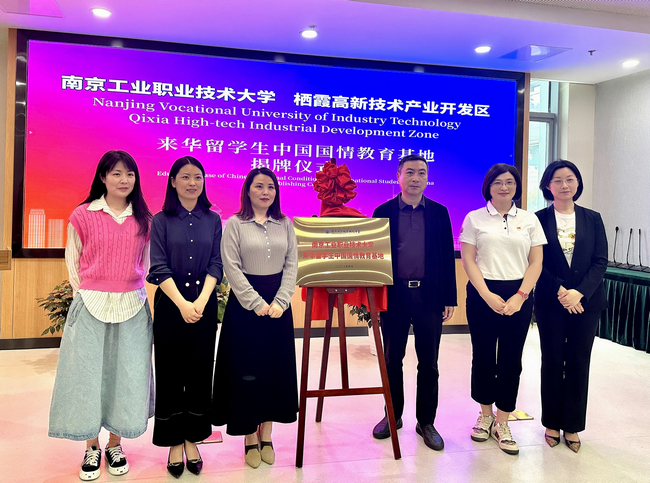 在紫东国际人才街区,师生一行依次参观了“一站式”服务大厅、人才驿站、孵化器、加速器、HATCH部落等功能区域,了解街区的运行模式和管理理念。街区随处可见可感的人性化设计理念,融入国际化元素的“类海外”发展环境,深得留学生青睐和赞许。随后,yl23411永利集团官网国际教育学院直属党支部副书记、副院长张莉与栖霞高新技术产业开发区纪工委书记顾戟共同为该校来华留学生中国国情教育基地揭牌,基地将发挥驻区高校留学生中国国情教育“首牌”作用,向留学生展示真实的、立体的、全面的中国形象。