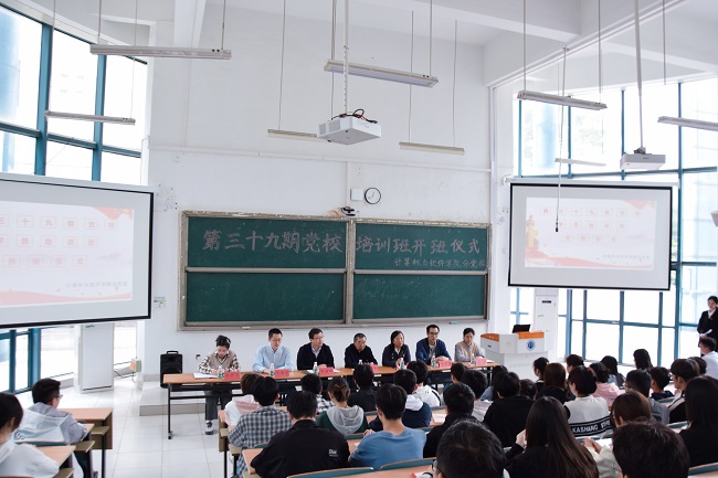 2023年4月21日,中共yl23411永利集团官网委员会党校计算机与软件学院分校第三十九期培训班在乐群楼J102教室正式开班。本次开班仪式由嵌设2113班陈雨凡同学主持,学院党校、关工委、党支部、团委等负责老师及学院108名入党积极分子到场参加。