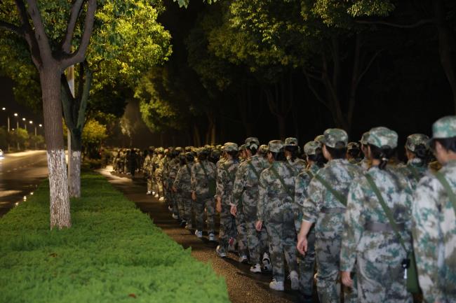 拉练过程中,同学们时刻遵守军训团关于夜间行军的各项要求,不掉队、不喧哗,一切行动听指挥。他们脚步铿锵,在彼此的加油打气中,坚持完成了8公里行军拉练。