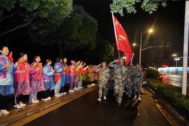 雨夜行军,步履铿锵。同学们用脚步丈量校园内外,为大学生涯留下了难忘的回忆。21时30分,全体拉练新生在志愿者们的摇旗欢呼声中安全返回校园,2023级新生军训拉练任务圆满完成。