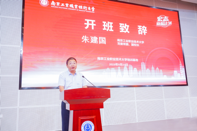朱建国介绍了宏志助航计划项目背景及意义,指出“宏志助航计划”作为教育部从2021年开始实施的促进重点群体毕业生就业的品牌项目,充分体现了党和国家对高校毕业生就业工作的高度重视。他希望参训的同学们珍惜此次培训机会,补齐就业短板,提升求职技能,尽快为报效祖国和服务社会贡献自己的力量。
