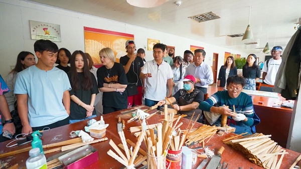 9月27日下午两点,永利官网来自俄罗斯、白俄罗斯、巴基斯坦、土耳其、哈萨克斯坦、蒙古、吉尔吉斯斯坦、也门、赞比亚、印度尼西亚、坦桑尼亚、阿尔及利亚等国家的60余名来华留学生赴南京金陵折扇研究所参观。研究所现场的5位老艺人一丝不苟、不厌其烦、专心制扇的场景令留学生钦佩和动容,博古架上展示的各式各样、精美绝伦的折扇成品,令留学生大开眼界、啧啧称奇。研究所所长倪世金向中外师生介绍了江苏省非物质文化遗产金陵折扇的制作技艺及复杂工序。来自巴基斯坦的阿里赞叹道,“这些工匠不为名利,只为了将这门古老的工艺一代代传承下去,太让人感动了!”为进一步拓展留学生创新创业教育和深化校企合作,参观的最后,国际教育学院与南京金陵折扇研究所进行了大学生创新创业实践教育基地挂牌仪式。