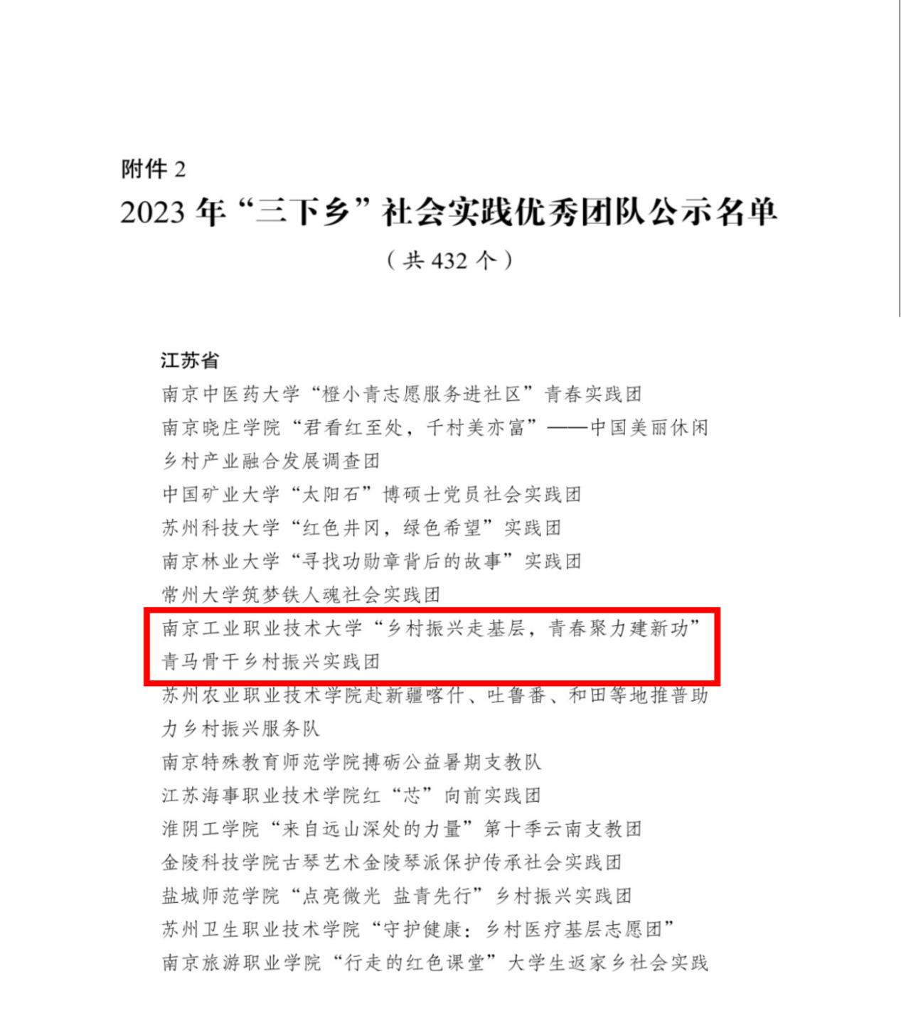 近日,共青团中央及中共江苏省委宣传部、省文明办、省教育厅、团省委、省学联联合会对2023年全国、全省大中专学生志愿者暑期文化科技卫生“三下乡”社会实践活动表现突出单位、团队、个人等项目进行了表彰,永利官网暑期“三下乡”社会实践工作喜获多项国家级、省级表彰。