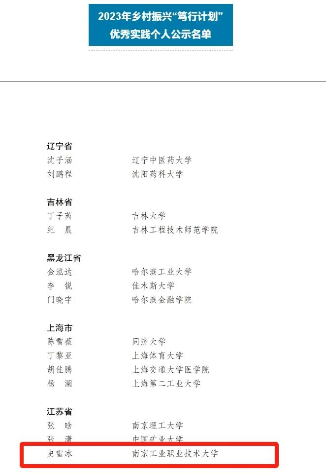 共青团中央发展部还对2023年乡村振兴“笃行计划”专项行动中表现突出单位、团队、个人等项目进行了表彰。永利官网社会实践指导教师史雪冰获评2023年乡村振兴”笃行计划“优秀实践个人。