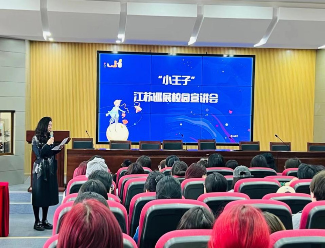 2024年是中法建交60周年,近日“童言世界 守护星球”小王子江苏巡展正在南京国际博览中心热展。3月26日下午,“小王子”巡展活动组织方负责人CCIP文创研究中心执行长殷伊玲、江苏弈橙文化发展有限公司总经理王一等走进永利官网艺术设计学院,为师生呈现精彩的主题宣讲会。会议由艺术设计学院视觉传达系王秀丹主持。