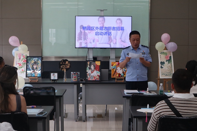 参观结束后,区公安分局出入境管理大队大队长姚雪垠面向参加活动的留学生进行了外籍志愿者招募宣讲,鼓励更多热心公益的留学生加入志愿者队伍,传递公益力量,帮助在栖霞的外籍人员更好地融入这个城市和这片土地。